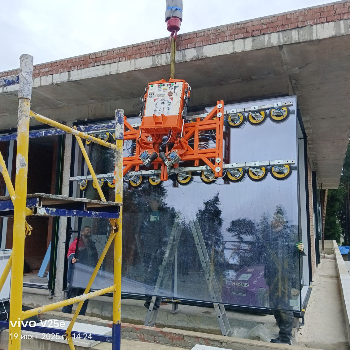 Остекление с помощью вакуумного захвата и стеклоробота Арлифт