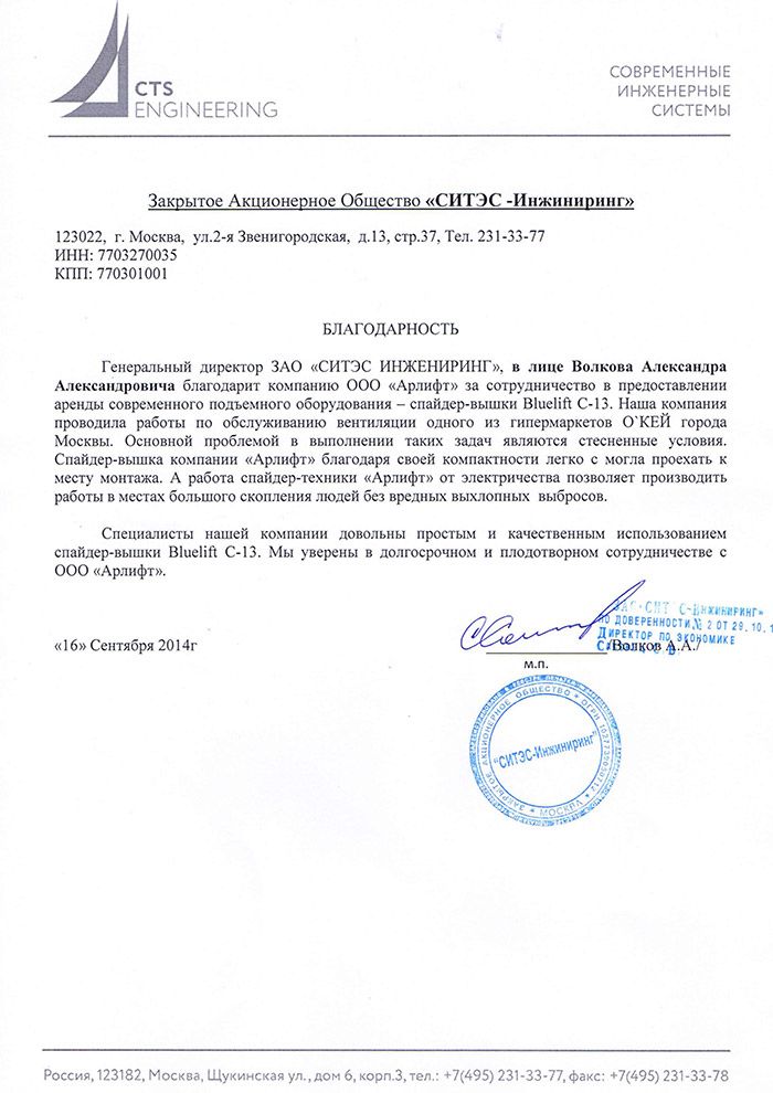 Менеджер Arlift свяжется с Вами в ближайшее время.