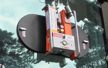 Гарантирует, что в случае резкой потери вакуума под присоской стекло или сэндвич-панель не сорвется. Для дополнительной защиты применяются стропы